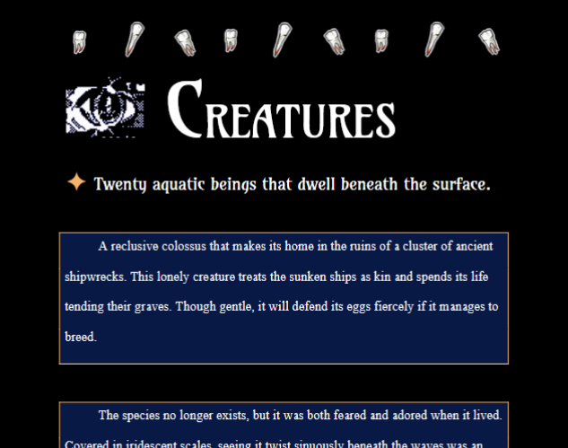 A digital collection of bite-sized fiction, containing: